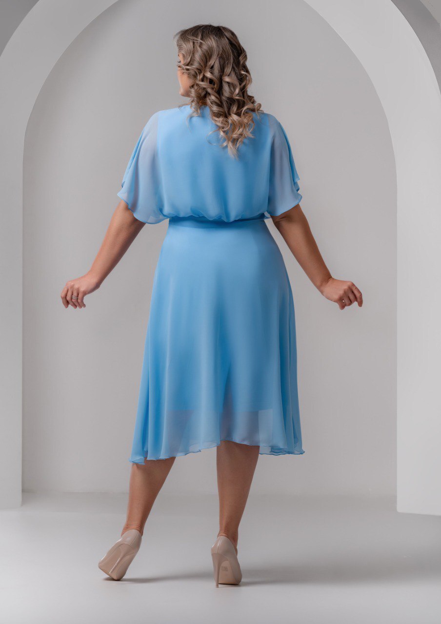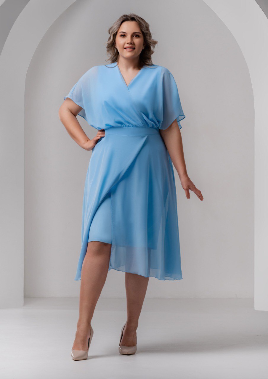 Бесплатная доставка по России! Женская модель платья "Роки" подходит для девушек и женщин , которые хотят выглядеть стильно и молодежно в любом возрасте и в любом размере. Ткань струящийся шифон придает модели легкости и воздушности, а рукав - крыло прикрывает руку до локтя. (размеры 54, 56, 58 и 60 под заказ) В наличии и под заказ.