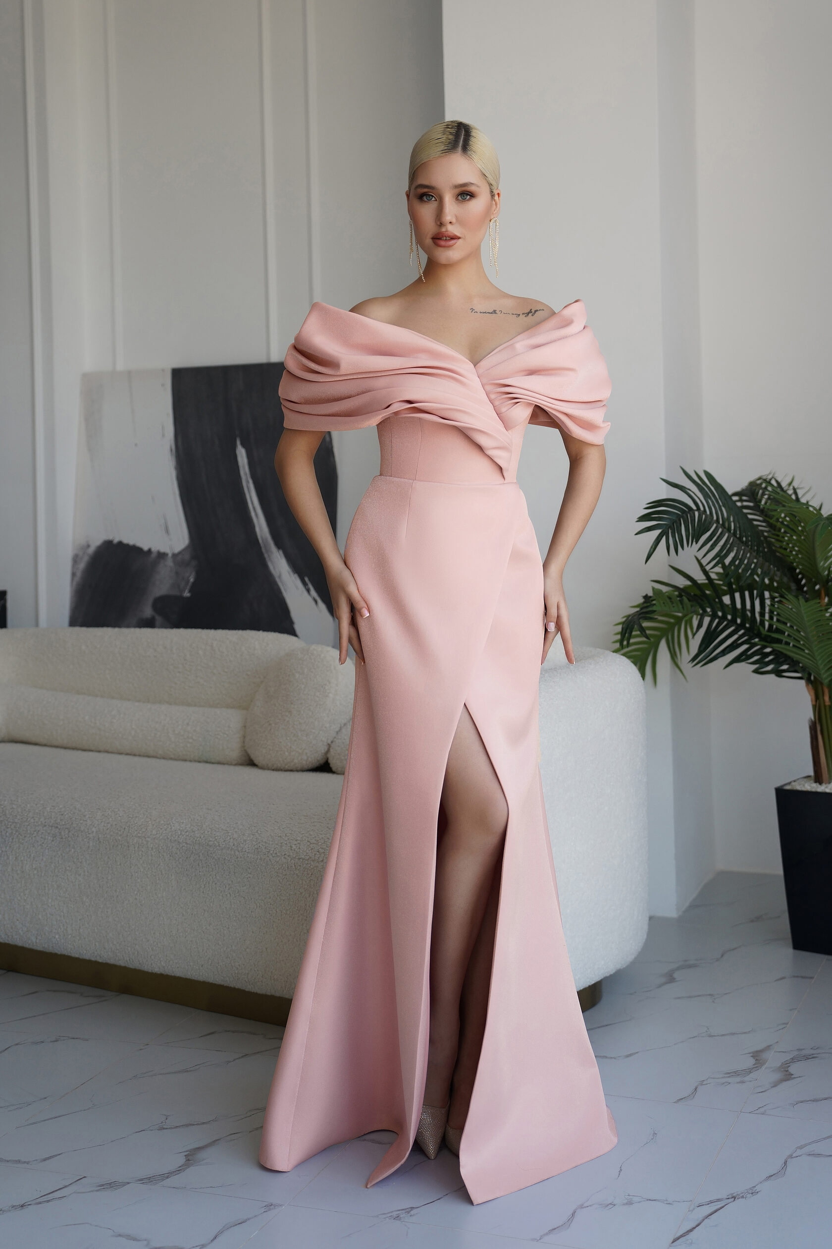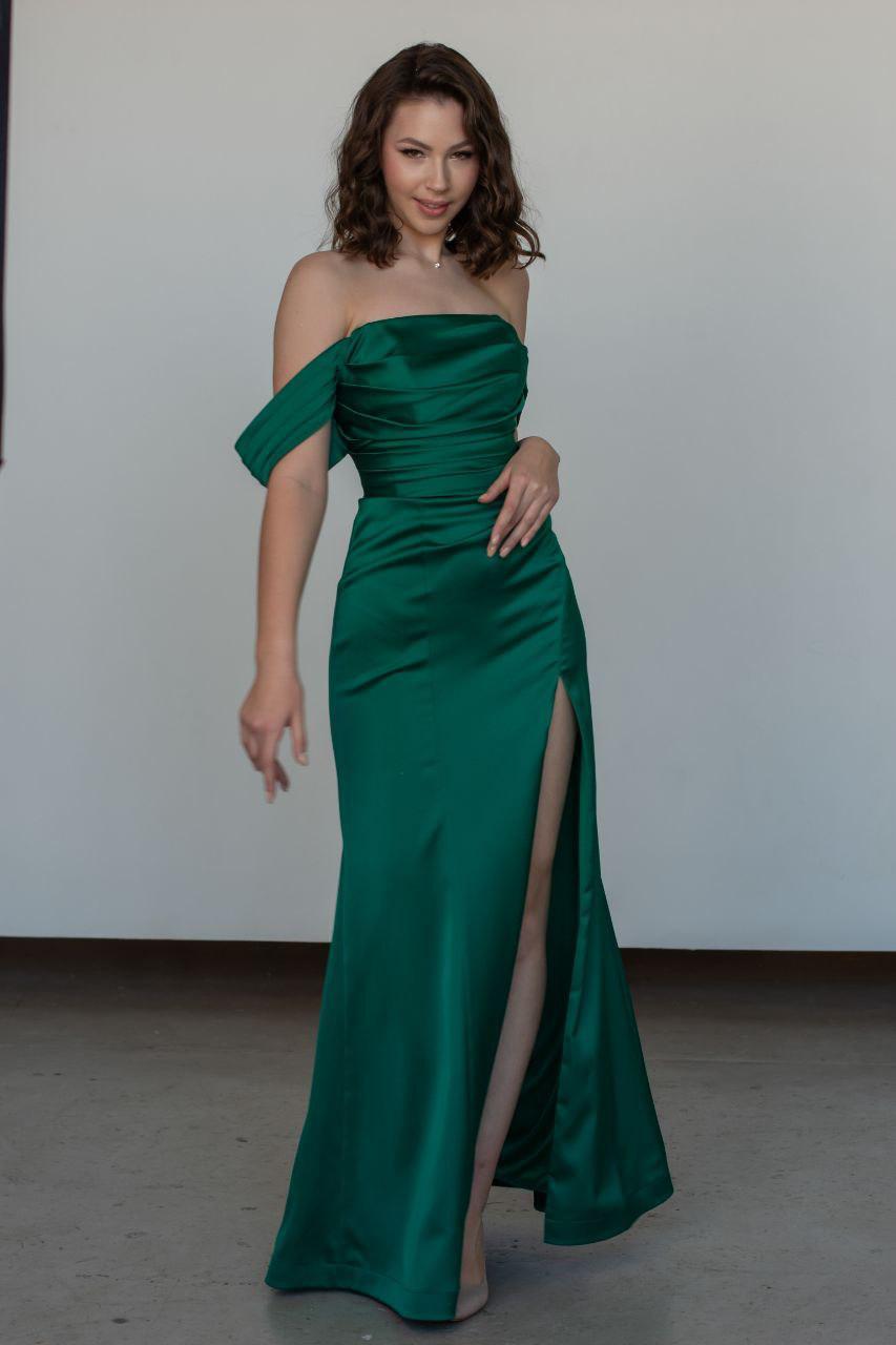 Бесплатная доставка по России! Вечернее платье Джули с V образным вырезом из мягкой, но в то же время плотной струящейся ткани с разрезом по ножке. Стильная, модная, молодежная модель. В этом платье легко создать эффектный образ. В наличии и под заказ.